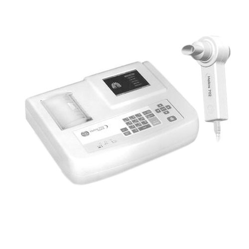 The spirometer measures how much air you can breathe into your lungs and how much air you can quickly blow out of your lungs.